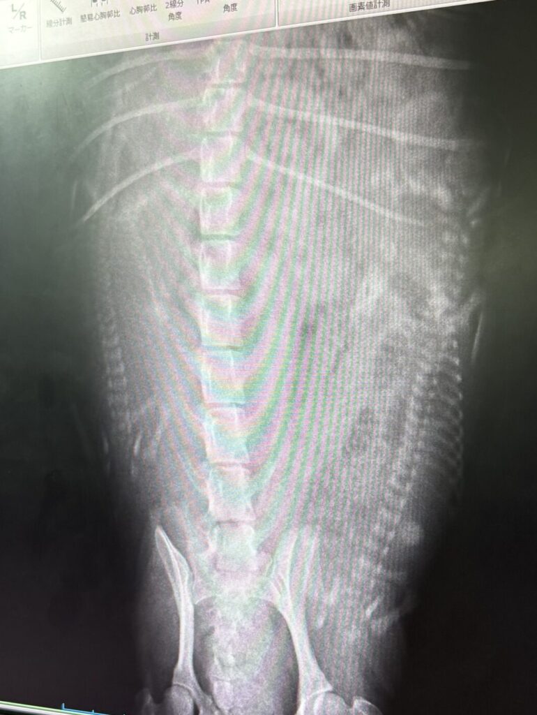 予定していた日より1日早いけどレントゲンにて頭数確認を実施。エコー検査の通り3頭であることを確認しました。